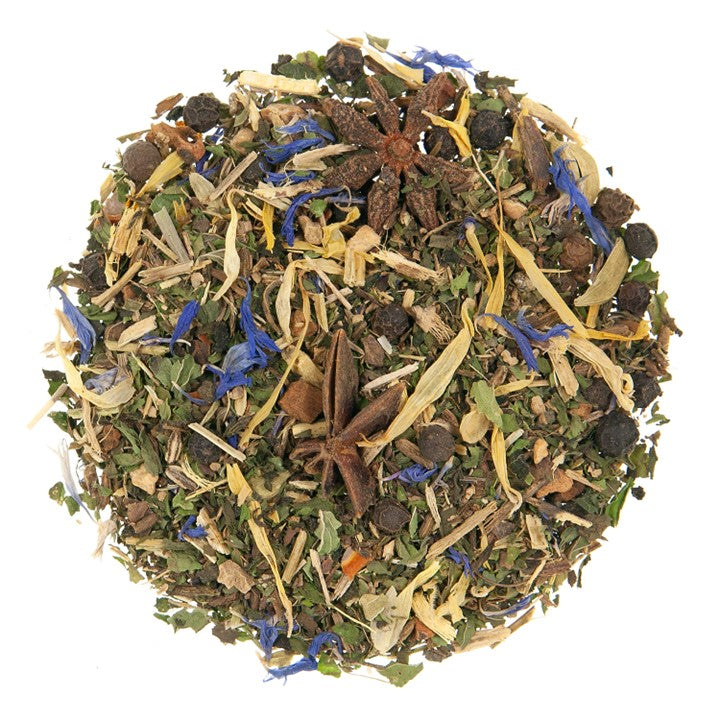 Luxury Ingredients: Licorice, Spearmint, Bitter fennel, Nettle, Star anise, Ginger, Black pepper, Cinnamon, Clove, Cardamom, Cornflower and Calendula petals.